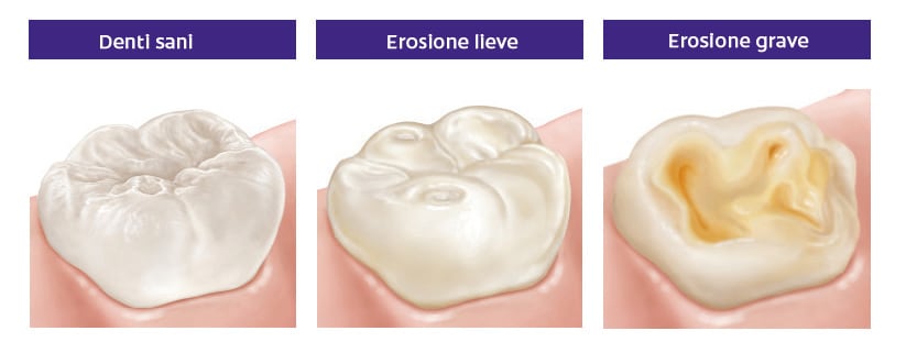 La perdita dello smalto dei denti è irreversibile. Il modo migliore di intervenire è innanzitutto prevenire la perdita dello smalto. Per prima cosa occorre determinare la causa alla base dell'erosione e quindi, se possibile, trattarla modificando il comportamento. Questo può essere un processo noioso e talvolta le cause scatenanti non possono essere affrontate in modo efficace. A causa del loro effetto sinergico, è importante controllare anche l'abrasione o l'usura durante questo periodo.